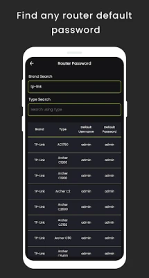 - View the default username and password list of all routers with search functionality.